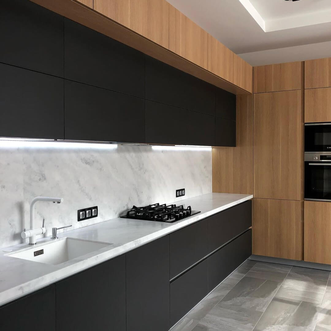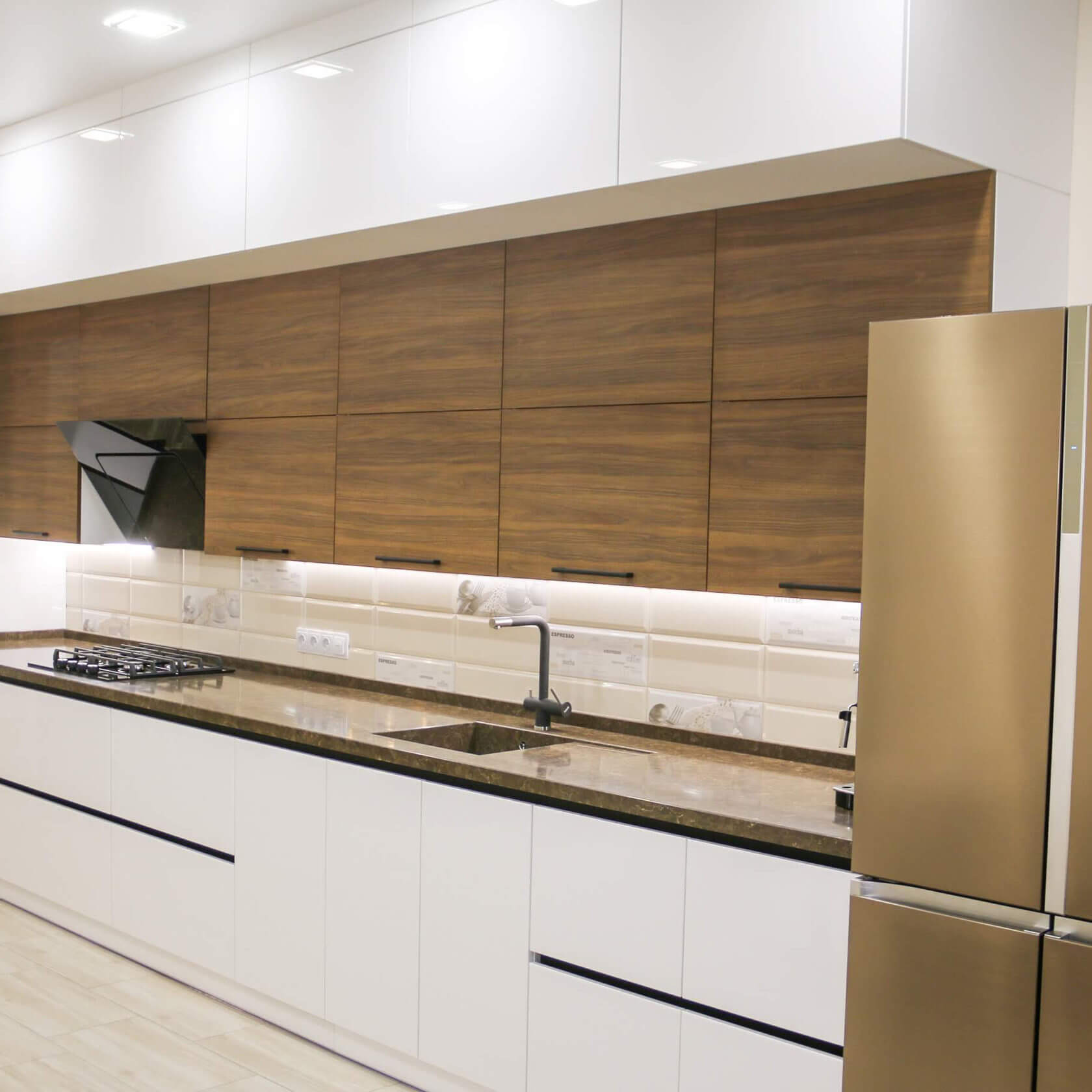 Да! Мы делаем кухни из любого материала, цвета и любой конфигурации. Даже самые смелые идеи воплотим в реальность! Дизайнер всегда поможет вам с выбором, с профессиональной точки зрения посоветует, как лучше сделать кухню конкретно для вашего помещения.